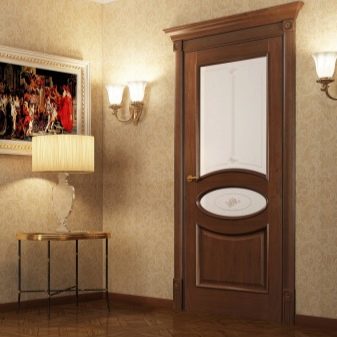 Класическите модели в един и същи цвят могат да се различават по завършване. Обърнете внимание как лаконично изглежда една глуха и остъклена врата в условията на един коридор.