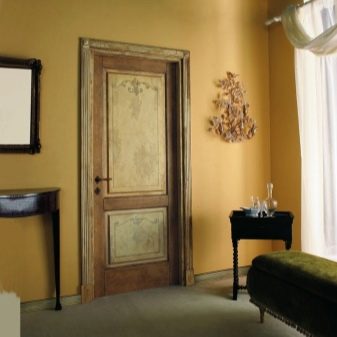 Особено актуални са тези патинирани врати, които имат изкуствена нотка на античността по фасадата. Естественият дървен нюанс изглежда еднакво добре в класически и модерен интериор, в контрастираща светлина или, напротив, тъмни покрития.