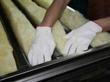 - Поставете изолацията между листовете. Запълнете пукнатините с полиуретанова пяна.