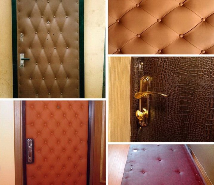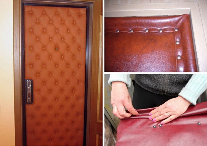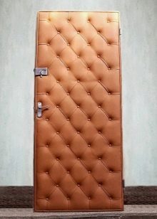 Най -рядко срещаното решение за усъвършенстване на конструкциите на вратите. Но по този начин можете да постигнете луксозен и атрактивен вид. Ако използвате тапицерия за стара износена врата, можете да скриете всички нейни дефекти. В допълнение, тази опция помага да се изолира платното..