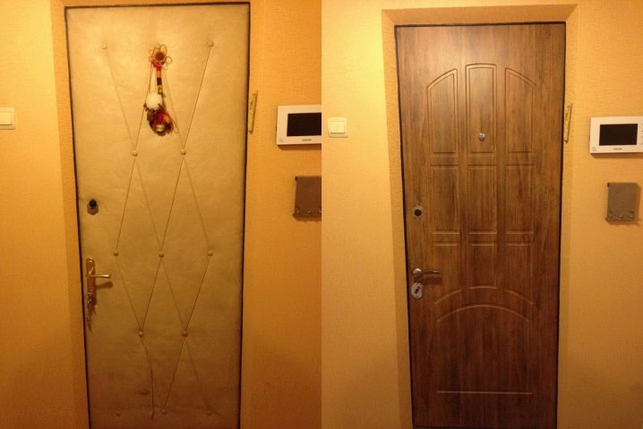 Облицоването на желязна врата може да се извърши по два начина: с евтини материали (изкуствена кожа, изкуствена кожа) и скъпи декоративни панели: