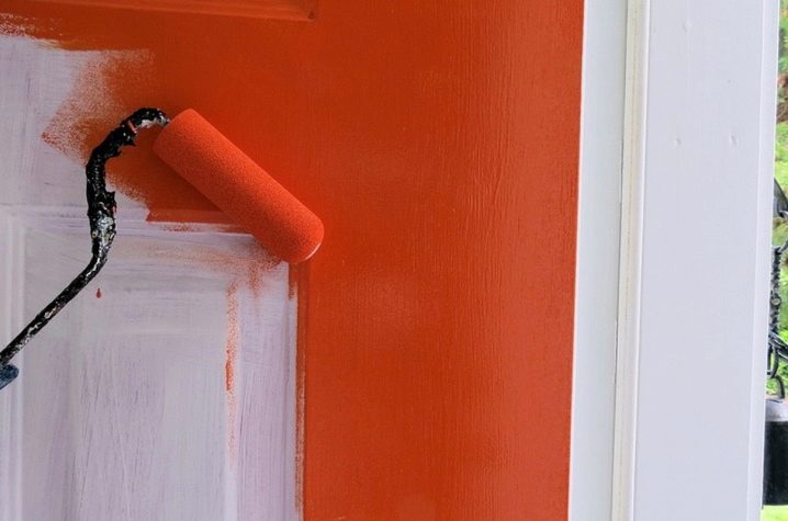 Необходимо е да нанесете оцветяващия състав с помощта на специален валяк на няколко слоя. Преди да нанесете следващия слой, не забравяйте да изчакате предишния да изсъхне. Можете също така да рисувате с боя върху повърхността на вратата, като използвате шаблони и четки. Този метод е подходящ за обработка на врати както извън, така и вътре в апартамента..