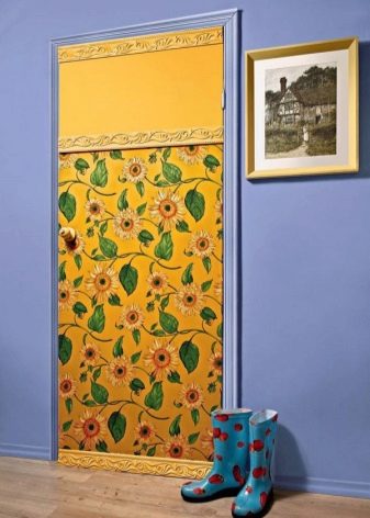 - Врата с рисувани пеперуди, цветя, дървета или облаци ще изглежда достатъчно нежна. Не е необходимо да рисувате всеки детайл, можете да направите рисунка под формата на абстракция.