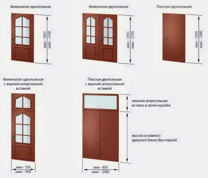 Независимо от вида на конструкцията, вратите имат стандартни размери, установени от ГОСТ: