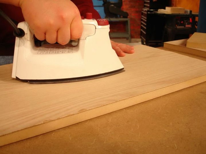 За да украсите фурнира, ще трябва да подготвите ютия и лист хартия. Ремонтът на платното започва с изваждането му от пантите и извършването на измервания. Фурнирните ленти се нанасят върху повърхността на продукта, така че моделът да съвпада. Препоръчително е да номерирате всяко парче, така че да няма объркване в бъдеще..