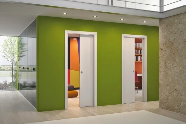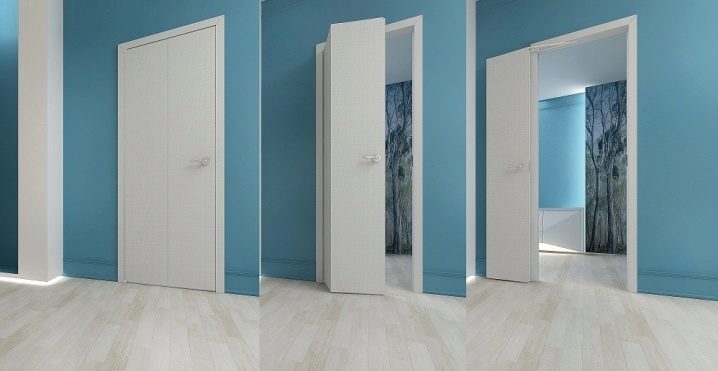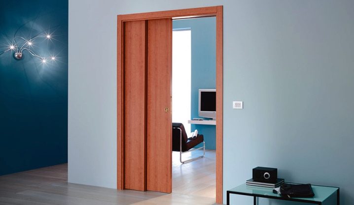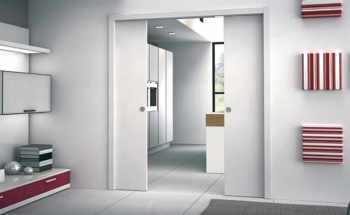 Принципът на движение на крилото може да бъде различен. Тя може да се движи по стената, сякаш се наслагва върху нея. Вторият вариант е да се движите вътре в стената. Би било правилно да се каже, че крилата на вратите са скрити не вътре в стената, а вътре в касетата, разположена там.