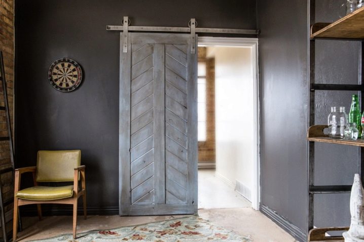 Тази опция за дизайн има ролки не отдолу, а отгоре. Тоест водачите най -често са разположени отгоре, а конструкцията на вратата е прикрепена към тях с помощта на специални елементи и се движи по нея с помощта на специални ролки, които се търкалят само по горната част на този бегач. Такъв механизъм е идеален за декориране на апартамент или къща в ретро стил..