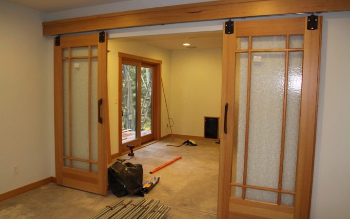 Това могат да бъдат конструкции с релса отгоре или отдолу, или може да има двурелсови модели. Най -популярни са продуктите на една горна релса. Те изглеждат много елегантни и необичайни. Такива врати могат да бъдат еднокрили и двукрили. Всичко зависи от ширината на прохода, в който са инсталирани.