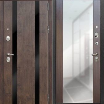 За заслуга на съвременните производители на метални врати, в модели с огледало от вътрешната страна, по време на производствения процес е предвидена вложка от заключващи устройства и аксесоари. Входните конструкции с огледални елементи са оборудвани със скрити брави във фабриката. Подобна “невидимост” предотвратява контакта на огледалото с ключа и появата на драскотини..