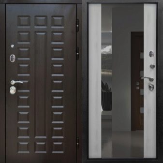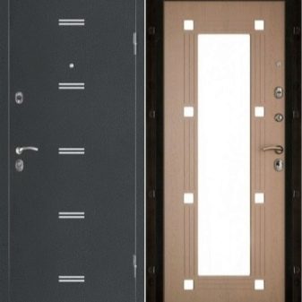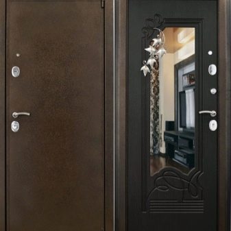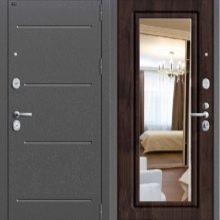 За заслуга на съвременните производители на метални врати, в модели с огледало от вътрешната страна, по време на производствения процес е предвидена вложка от заключващи устройства и аксесоари. Входните конструкции с огледални елементи са оборудвани със скрити брави във фабриката. Подобна “невидимост” предотвратява контакта на огледалото с ключа и появата на драскотини..