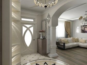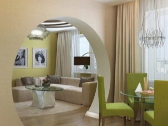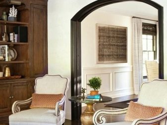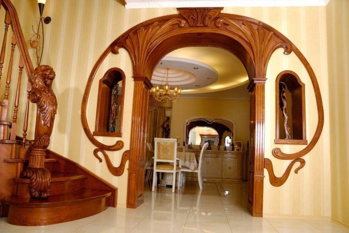 Отвор със сложна форма, допълнен с колони и мазилка, е най -подходящ за използване в хола. Както знаете, използването на циментови елементи подсказва за съотношението на стаята с всеки стил, който предполага такива детайли (например рококо, барок, венециански и други). Широките отвори изглеждат неудобно в малки стаи, така че, вземайки решение за такава стъпка, се уверете, че е подходяща.