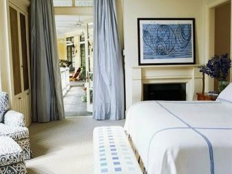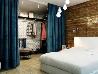 Доста рядко се отказва вратата към спалнята, но те не смеят да напуснат входа напълно „беззащитен“. Елате на помощ тъмни завеси или паравани, които перфектно запазват интимността на стаята. Ако е необходимо, те могат лесно и бързо да бъдат демонтирани. Интересно решение е използването на завеси с куки: те могат да бъдат напълно затворени през нощта, а през деня ще служат като красива рамка за отвора..