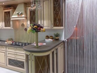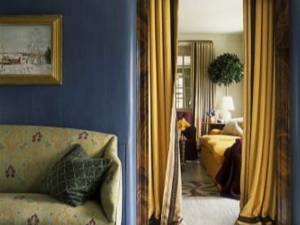 Декоративната завеса играе същата роля като вратата психологически, но заема много по -малко място. Ако желаете, завесите могат да бъдат свалени без никакви проблеми или заменени с други, докато дизайнът на отвора няма да пострада (например, ако просто премахнете крилото на вратата, пантите ще останат на разстоянието, което не изглежда много привлекателно ).