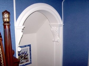 С помощта на мазилка е възможно да се декорират отвори в различни стилове. Например, можете да направите класическа арка с колони и тежки къдрави елементи. Ако добавите позлата, ще можете напълно да пресъздадете духа на барока или класиката. За съвременния интериор е по -подходящо да се използват прости релефни корнизи с геометрични шарки, например релефни линии на жлебове. Ако в първия случай изборът в полза на пиластри и капители е бил подходящ, то във втория – те трябва да се избягват.