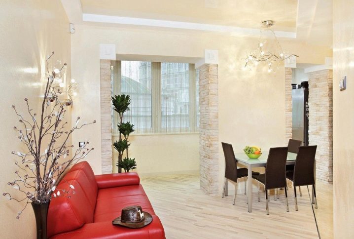 Старият скучен интериор на хола може да бъде променен до неузнаваемост, като в същото време компетентно се разширява използваемата площ. Ако изоставите изолирания балконски блок и вратата към балкона, ще се окаже, че холът ще стане по -светъл. Балконът със сигурност ще трябва да бъде обзаведен в стил, подобен на хола, тъй като стаите, обединени от отвор без врата, трябва да се възприемат като цяло.