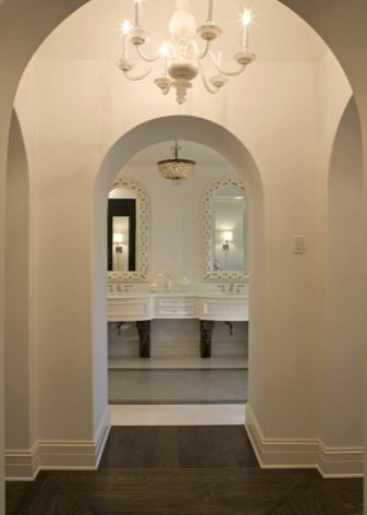 По -популярно строителство сводести конструкции. За да направите това, не е необходимо да разширявате отвора в стената; през последните години идеята за създаване на фалшиви арки се използва активно. В този случай ъглови елементи, изработени от полиуретан или гипсокартон със заоблени страни, се монтират в правоъгълен участък и резултатът е пълноценна арка с много по-малко пари и труд. Този метод обаче далеч не е подходящ за всички жилища: необходимо е отворът да има достатъчна височина.