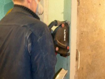 В процеса ще се сблъскате с проблема с появата на голямо количество прах. За да избегнете това, по -добре е да избършете работната повърхност с влажна кърпа и непрекъснато го намокряйте по време на монтажа. За да извършите работата, ще ви трябва мелница, чук, длето, перфоратор.