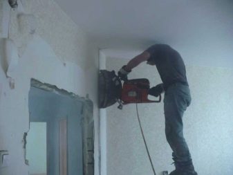 Тук за разширяване на структурата се използва чук, перфоратор или много голям чук. Върху конструкцията първо се правят контури за заливане с отстъпи на необходимото разстояние в сантиметри от първоначалния отвор, а след това, приблизително в средната част на допълнителната маркировка, излишната част от конструкцията се отчупва с тежки инструменти. Това е доста сложен процес, който изисква много физически и силови разходи. Освен това поради удари в стената могат да се образуват микропукнатини, които скоро ще разрушат конструкцията..