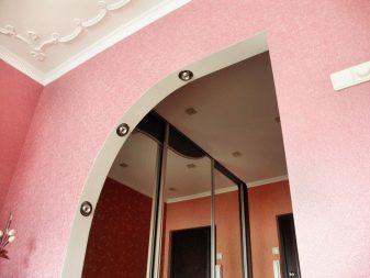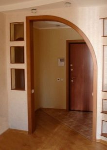 Облицовката се извършва както с монтирането на крилото на вратата, така и без него. Ако в конструкцията присъства врата, тогава самите панели трябва да имат същия цвят като самата врата, докато е по -добре да изберете подходящия материал. Използването на довършителен материал с ярък цвят, който създава контраст с крилото на вратата, ще изглежда необичайно. Това е смело и стилно решение. Този завършек е по -подходящ за декориране на прохода към детската стая. Декорацията се извършва и с резбовани панели..