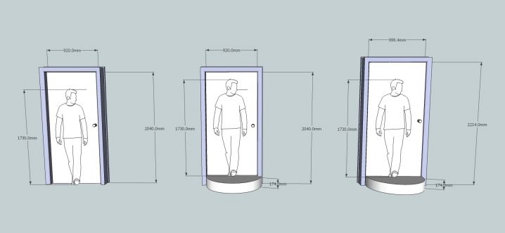 Също така е важно да се има предвид наличието на рамка на вратата. Отворът трябва да бъде 7-10 см по-широк и по-висок от крилото на вратата.
