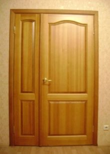 Може да се нарече класическият тип панелни врати люлка. Те са монтирани на стелажа на кутията с помощта на два или три чифта панти, когато са затворени, те се вписват плътно в каналите и са удобни за използване в онези помещения, които са достатъчно просторни. Предимството на люлеещите се врати е тяхната простота, надеждност и възможност за интегриране на брави и ключалки. Можете да украсите такива врати с всякакъв вид панели, от олекотени до обемни или претеглени с надземни шарки.