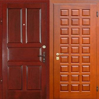 Входните врати са изработени от по -дебело масивно дърво; металните ленти често се използват за подсилването им. В много случаи рамката е изцяло изработена от метал, облагородена с дървени панели-панели.