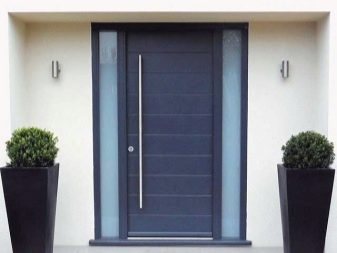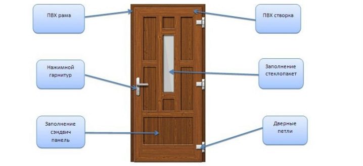- Крила на вратите. Основата на крилото на вратата е метална рамка, ушита от двете страни. Издръжливостта се осигурява от многокамерен (2 до 5) профил. Отвън, на входните врати, се използва метална облицовка, вътре има термичен прекъсвач (предпазва вратата от замръзване). Прозорци с двоен стъклопакет, стъкло, триплекси могат да се използват и за външен дизайн..