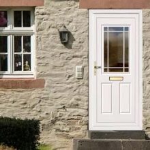 Всички видове пластмасови врати могат да включват стъклени елементи.