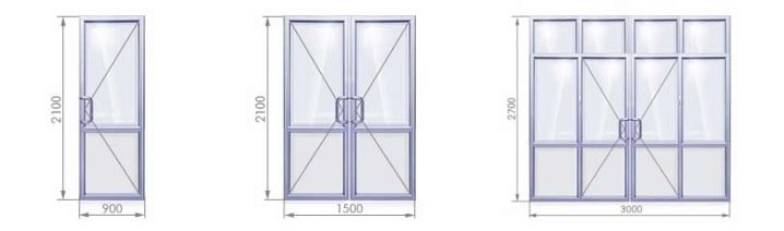Размерите на един и половина са в диапазона от 1010-1550 мм по ширина и 2050-2370 мм по височина. Двукрилите врати са незаменими в помещения с чест транспорт на обемисти предмети, като стопански постройки или магазини. Те имат най-големите размери: 1910-1950 на 2370-2450 мм.