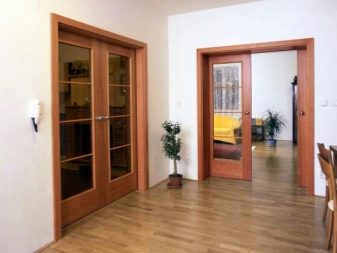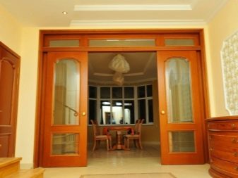 Изборът на материал трябва да се основава на стила на декора и вида на стаята. В стаята могат да се монтират както дървени, така и стъклени врати. Последните създават усещане за лекота и допълнително пространство. Тази опция е идеална за малък апартамент..