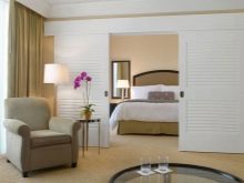 Такива врати ви позволяват да монтирате мебели близо до стената, без да се намесвате и спестявате място в стаята.