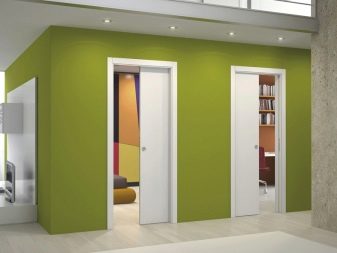 При отваряне листата на такава врата се скриват в стената и стават напълно невидими. За това в стената е предвидена специална ниша. Моделите с едно крило се монтират в една “молив”. Двукрилите врати изискват инсталирането на втора ниша.