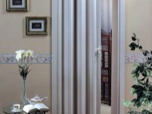 Необходимо е също така да се вземе предвид следният момент: тъй като прибиращото се платно се движи по стената, не можете да окачвате снимки на това място, да поставяте нощни шкафчета и други интериорни предмети, защото те ще пречат на отварянето на вратата.