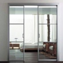 - Не забравяйте да вземете предвид интериора на помещенията, между които ще бъде инсталиран плъзгаща се врата. В класиката напълно стъклено платно ще изглежда смешно, но хармонично ще се впише в хай-тек или минимализъм.