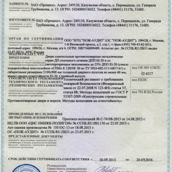 В същото време сертификатът описва тествания модел много подробно, включително най -малките му параметри, измерени до милиметър. Обикновено в документа се посочва, че е възможно определено (строго предписано!) Отклонение от нормата – това позволява на производителя да се адаптира към индивидуалната поръчка и да освободи вратата с размера, от който се нуждае потребителят. Ако отклонението надвишава допустимото отклонение, дори при спазване на пропорциите или законите за противопожарна защита, тогава сертификатът за този модел няма да бъде валиден – следователно не е факт, че ще защитава.