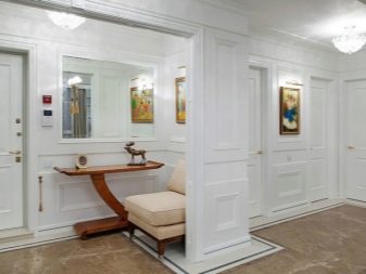 - За хола ще направи масивна врата, която представя къщата, правейки впечатление на гостите. За да изглежда интериорът солиден и представителен, се използват наслоения, подобни на дърво. Те се поставят не само на вратата, но и на съседни участъци от стената..