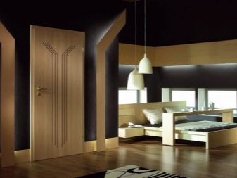 - За спалня се използват по -малко масивни наслагвания. Те могат да бъдат комбинация от материали, дърво и матирано стъкло. Понякога вратата е украсена с огледало. При проектирането на дървени панели акцентът често се поставя върху хоризонталната посока на зърното, която понякога се комбинира с вертикалната. За спалнята светлите цветове често се избират в декорацията на вратата..