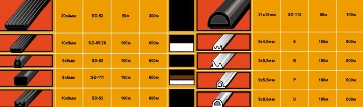 Когато избирате самозалепващо се уплътнение на вратата, първата стъпка е да решите размера на продукта. Необходимо е да се надгражда върху характеристиките на конструкцията на вратата. Трябва да се отбележи, че върху всеки елемент има знак. Например, уплътненията, маркирани с Е, са подходящи за отвори с диаметър 2-3,5 мм. Уплътненията с маркировка Р се използват за празнини от 3-5 мм. За отвори с индикатор от 3 до 7 мм са подходящи уплътнения с обозначение D.
