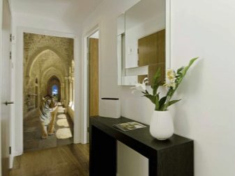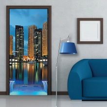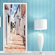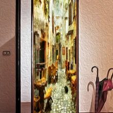 С помощта на фототапети можете бързо и с минимални разходи да трансформирате вратите в цялостния стил на интериора. Този материал е идеален за декориране на плъзгаща се врата, особено ако изберете тесни платна с вертикален модел. Ще се окаже много модерно и необичайно дизайнерско решение..
