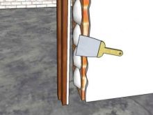 Подготвеният отвор трябва да е чист, тухлената зидария на стената или бетона трябва да се вижда. Преди да стесните, трябва да направите маркиране: поставете метално правило на пода близо до всяка от стените. Тя трябва да опира в мазилката на стената.