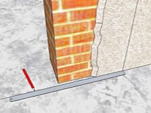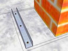 - Инсталирайте метални ъгли в каналите на стената: те ще станат рамката за блоковете. Важно е да изберете надеждни и издръжливи ъгли, те ще държат цялата бетонна или тухлена конструкция;