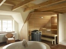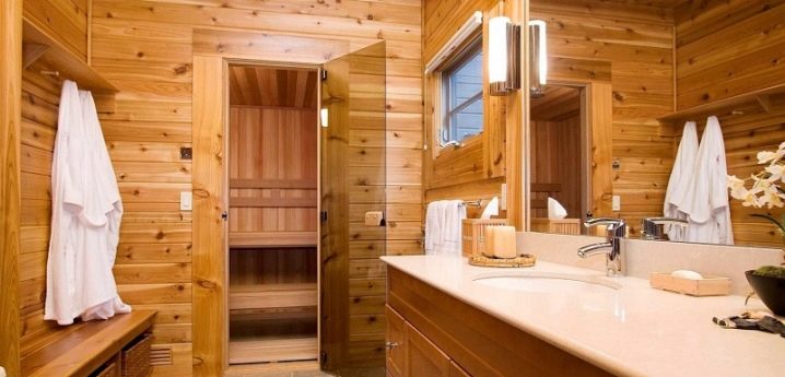 Важен момент. Вратата за парната баня трябва да бъде избрана с парата, издигаща се до тавана. Затова той трябва да „запази“ място. Ако например таванът има височина 280 сантиметра, тогава трябва да се отдръпнат поне 70 сантиметра и само на тази височина вратата трябва да се монтира. Така височината на вратата в посочената стая ще бъде 205-210 сантиметра..