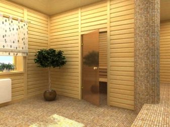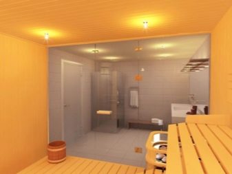 Важен момент. Вратата за парната баня трябва да бъде избрана с парата, издигаща се до тавана. Затова той трябва да „запази“ място. Ако например таванът има височина 280 сантиметра, тогава трябва да се отдръпнат поне 70 сантиметра и само на тази височина вратата трябва да се монтира. Така височината на вратата в посочената стая ще бъде 205-210 сантиметра..