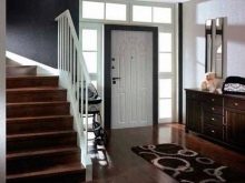 Входната врата изглежда красива и стилна, съчетавайки цвета с пода на тази или онази стая. Следователно врата с идентичен нюанс е идеална за тъмен под. Не е задължително да е точно същия цвят като пода. Цветовата му схема може да бъде близка до подовата палитра и тогава те ще изглеждат като една композиция..