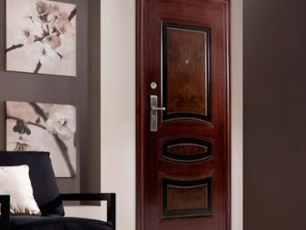 Някои стоманени входни врати могат да бъдат тапицирани със защитни панели. Най -актуални са продуктите от дъб, орех и венге. Професионалните дизайнери препоръчват да изберете цвят на вратата, който няма да доминира. Смята се, че тази опция е най -хармонично съчетана с общата среда..