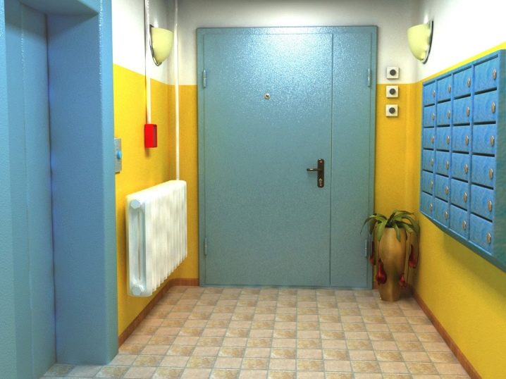 Металните врати не само затрудняват живота на крадци и хулигани. С тяхна помощ е възможно да се образува общо пространство (коридор), където всички жители съхраняват обувки и дори по -големи неща наведнъж..
