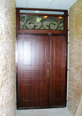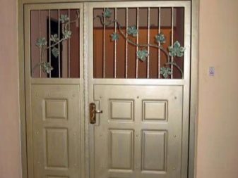 За прегради, поставени във вестибюла, може да се използва метал с най -високо качество, но декоративното довършване рядко се практикува за тях. В производството такива врати могат да бъдат направени от изцяло метален лист или от решетка. В много модели тези елементи се комбинират, за да осигурят както сила, така и способност да наблюдават какво се прави навън..