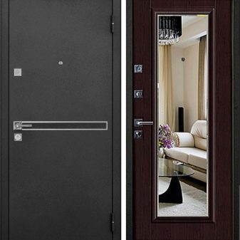 Напоследък интериорните врати на тази марка също набират популярност, от една или две страни на които огледално покритие. Не е тайна, че огледалото визуално увеличава пространството със своите свойства, но и това не е най -важното. Първо, в малки помещения такова решение ви позволява да спестите място и да не окачвате или поставяте огледало отделно, защото мястото вече е проектирано и се вписва идеално в цялостния интериор на стаята. Второ, огледалното покритие се нанася по такъв начин, че да не е подложено на драскотини и деформации, трудно е да се счупи и определено няма да падне от мястото си.
