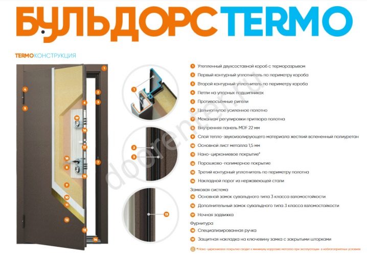Моделната гама на завода предлага избор от цяла гама опции за врати, които могат да бъдат инсталирани в къщи, където изходът не се осъществява във входа или верандата, а директно на улицата. Сложността на задачата се крие във факта, че температурната разлика естествено влияе върху разрушаването както на лаковото покритие, така и на фитингите или дори на самата врата. В райони, където външните температури надвишават средно -10 градуса през зимата, си струва да обърнете специално внимание на продавача, че имате нужда от врата, специално изработена за такъв случай. Не всяка врата може да издържи на температурни крайности, дори ако е изработена от желязо или дори ако е от Bulldors.