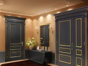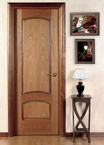 Продуктите, принадлежащи към първия тип, се произвеждат от фурнир от елитни дървесни видове (махагон, бук, дъб) по патентована технология. Благодарение на това животът на такива врати се увеличава и те стават по -устойчиви на температурни промени..
